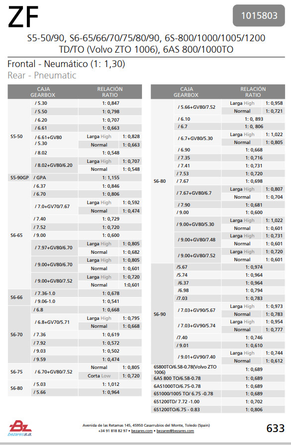 S5-50/90, S6-65/66/70/75/80/90, 6S-800/1000/1005/1200 TD/TO (Volvo ZTO 1006), 6AS 800/1000TO