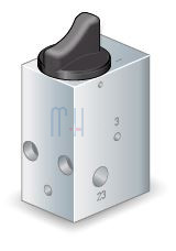 The switch directs compressed air through a specific line within the system when actuated. The operator engages the internal valve mechanism using a button or lever, thus activating or deactivating a particular function.