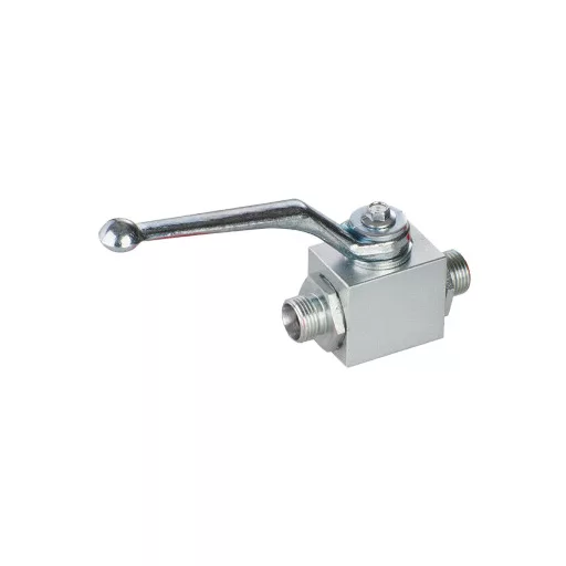 The GE2 22L 2-way ball valve is designed for hydraulic systems with DIN 2353 L (Light Series) connections, providing safe and reliable opening and shut-off of hydraulic flow. It features a carbon steel housing with a high load capacity design, ensuring dependable operation in truck hydraulic systems and industrial applications.