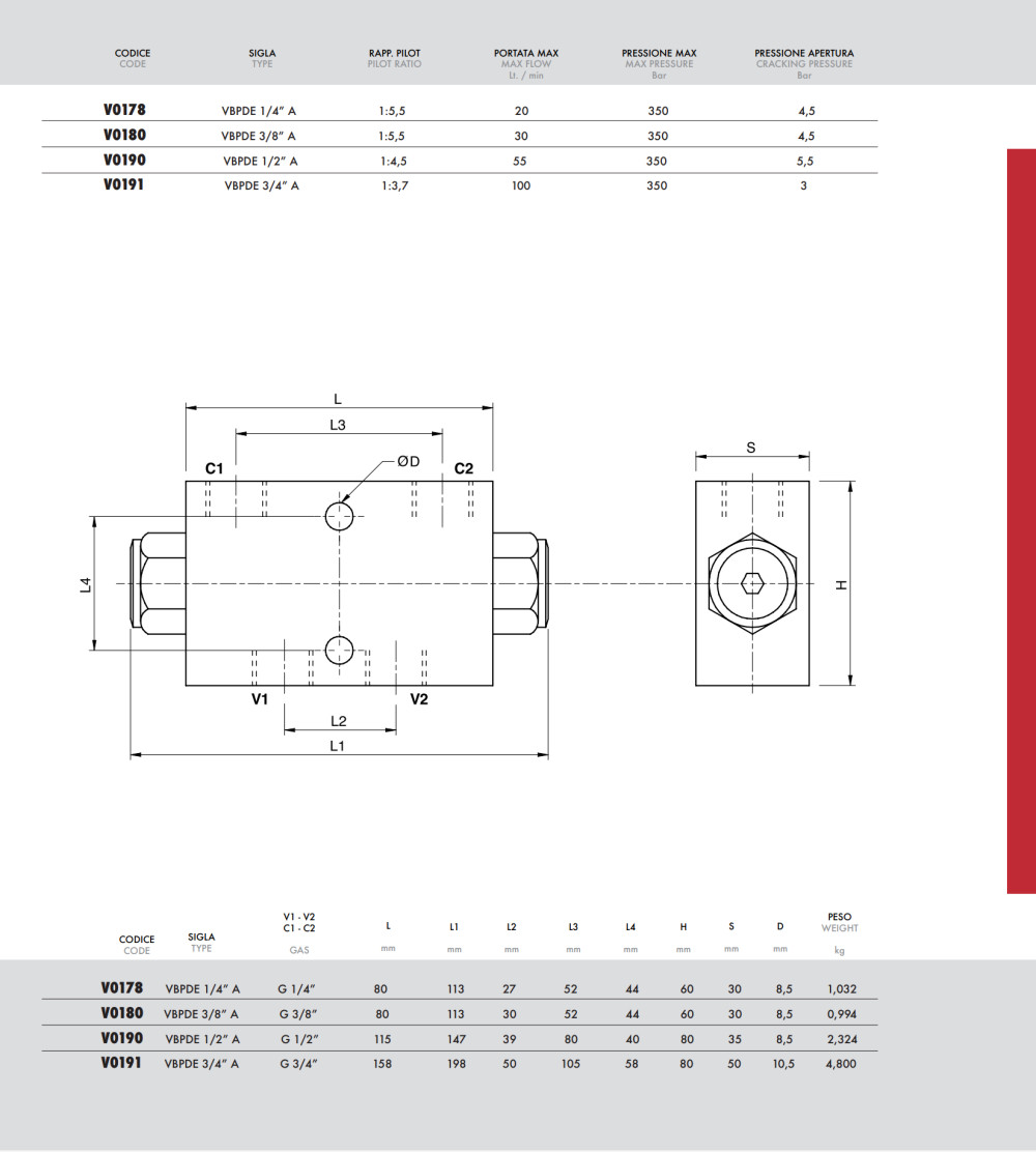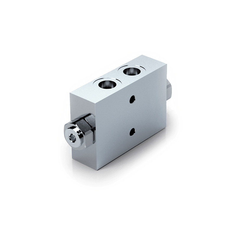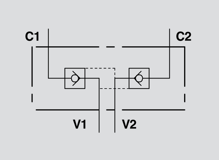 This valve contains two integrated check valves that allow flow in one direction while preventing reverse flow. However, when pressure is applied to the pilot port, it opens the opposite check valve, enabling controlled bidirectional movement.