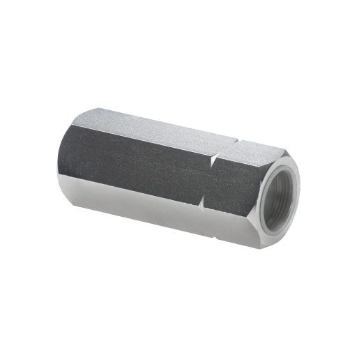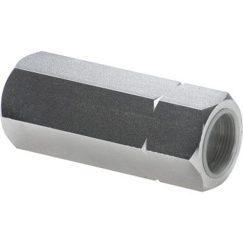 This check valve allows fluid to flow in only one direction, automatically blocking flow from the opposite side. Inside the valve is a spring-loaded mechanism that normally keeps the valve closed.