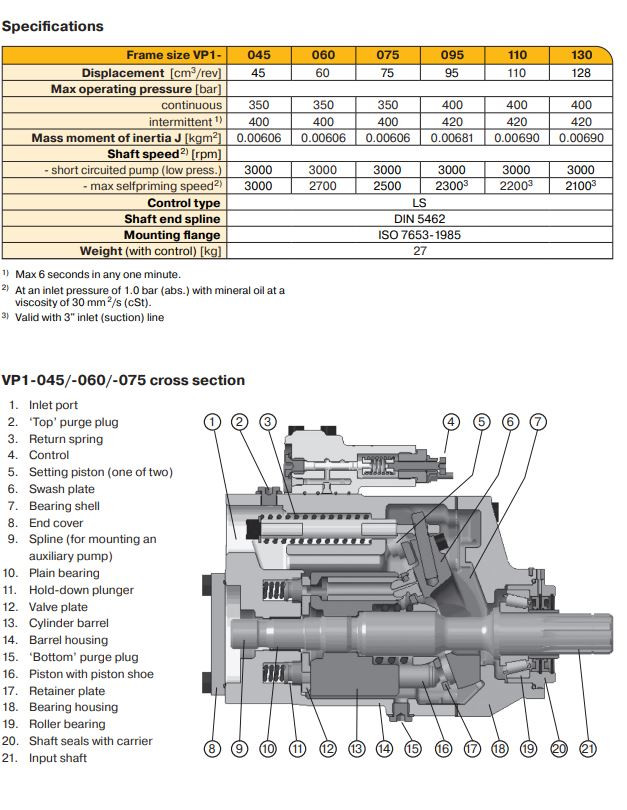 • Type: VP1 series (variable displacement axial piston pump)